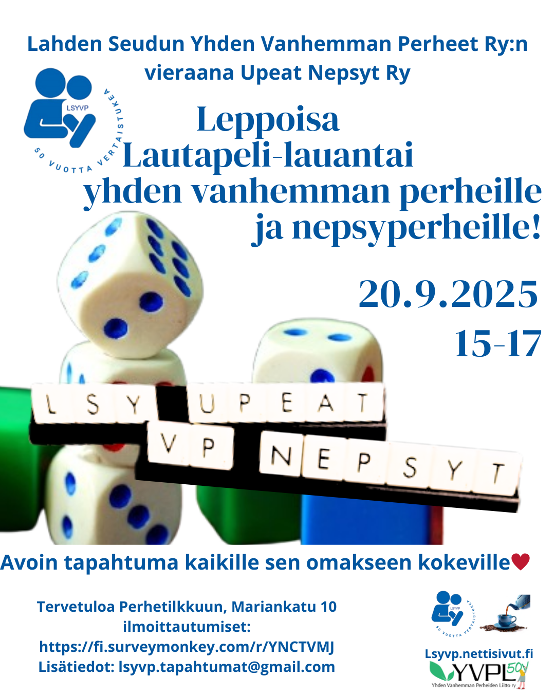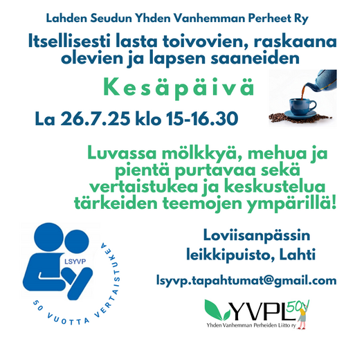 LSYVP JÄRJESTÄÄ: SOMAT SAIPPUAT- JOULUPAJA YHDEN VANHEMMAN PERHEILLE. Avoin kaikille kiinnostuneille, ei edellytä yhdistyksen jäsenyyttä. Tervetuloa💖. Valmistamme asiantuntijan opastuksella suloisia saippuoita jouluisissa tunnelmissa yhdessä lasten kanssa. Materiaalimaksu 5€/perhe (kät/mobile pay) . Tarjoiluiden ja muiden järjestelyjen vuoksi vuoksi tilaisuuteen on ennakkoilmoittautuminen, tähän tapahtumaan ei järjestetä erillistä lastenhoitoa. https://fi.surveymonkey.com/r/NZ2CFCR