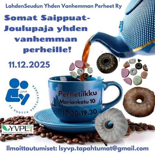 Kahvimaksu 2€/perhe (käteinen ja mobile pay) . Tervetuloa to 11.12.25 klo 17.30-19.30, Perhetilkku, Mariankatu 10, Lahti.